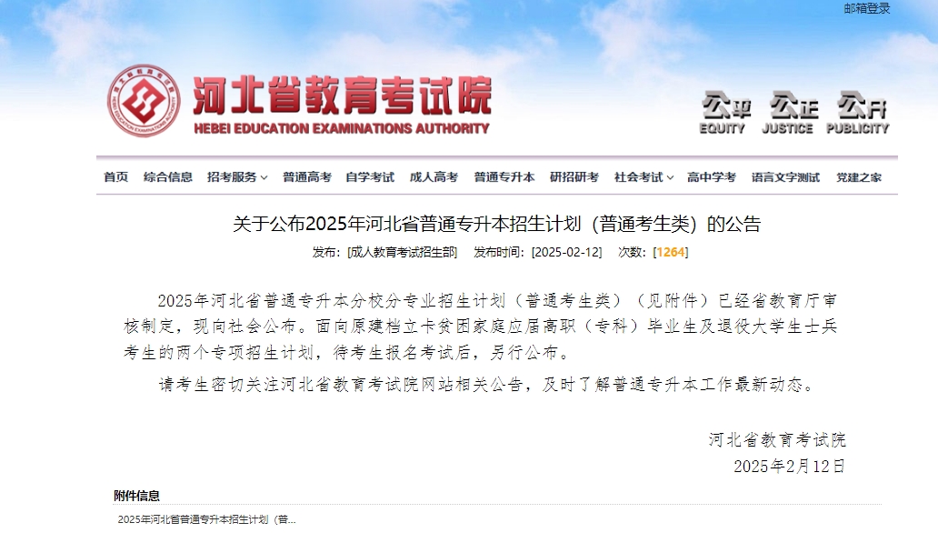 關(guān)于公布2025年河北省普通專升本招2025年河北省普通專升本分校分專業(yè)招生計劃(普通考生類)(...詳情